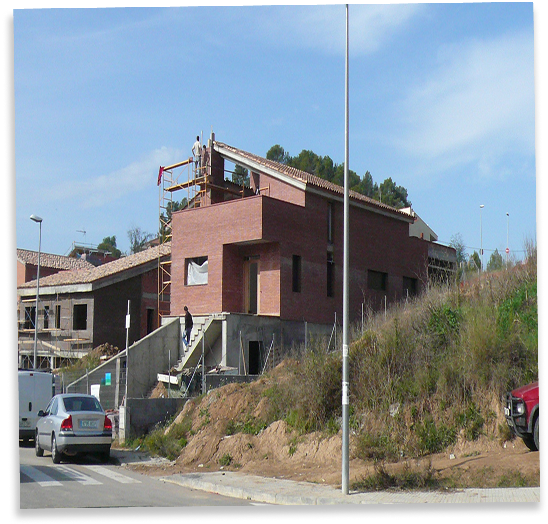 Diseñamos una vivienda unifamiliar aislada en una parcela única, manteniéndola separada unos 10 metros de la calle.