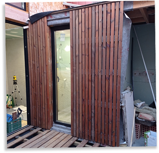 Además, construimos una valla en el límite con el vial, integrando armarios para contadores y acometidas, así como un tramo de escaleras para salvar el desnivel inicial.